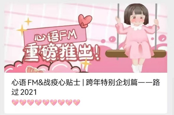 疫情防控期間,考慮到學(xué)生學(xué)習(xí)生活場(chǎng)所受限,學(xué)生情緒容易受到環(huán)境影響。心理健康教育中心通過新媒體開展“戰(zhàn)疫心貼士”、心語FM專欄,每天為該校學(xué)生推送疫情心理調(diào)節(jié)小妙招及各類心理援助資源。相繼發(fā)布的15篇推文有效地幫助學(xué)生們掌握了有關(guān)疫情的心理健康知識(shí),學(xué)會(huì)了自我健心減壓,引導(dǎo)他們理性對(duì)待疫情,不恐慌、不信謠、不傳謠,保持良好心理狀態(tài)。