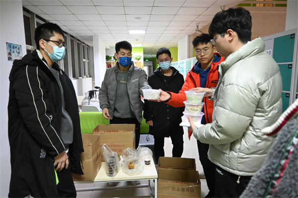 為了讓同學們在外求學的第一個冬至過的有意義,羅慶輝與班委們精心策劃,用班費提前在餐廳預定了106份水餃,他們做好分工、分組分批送達同學們手中。“由于疫情原因,我們班級原本計劃的冬至集體包餃子活動不得不取消了,我想盡可能的彌補這個遺憾,讓同學們在冬至仍然能吃得上餃子,而且吃上屬于我們班級的餃子。”羅慶輝說道。
