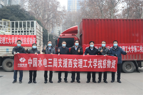 中國水電三局黨委書記、董事長張育林得知學(xué)校急需防疫和生活物資后,要求特事特辦,急事急辦,1月4日中午,中國水電三局緊急采購的醫(yī)用外科口罩、84消毒液、過氧乙酸、水洗手消毒凝膠等第一批防疫抗疫物資即送達(dá)西安理工大學(xué)。