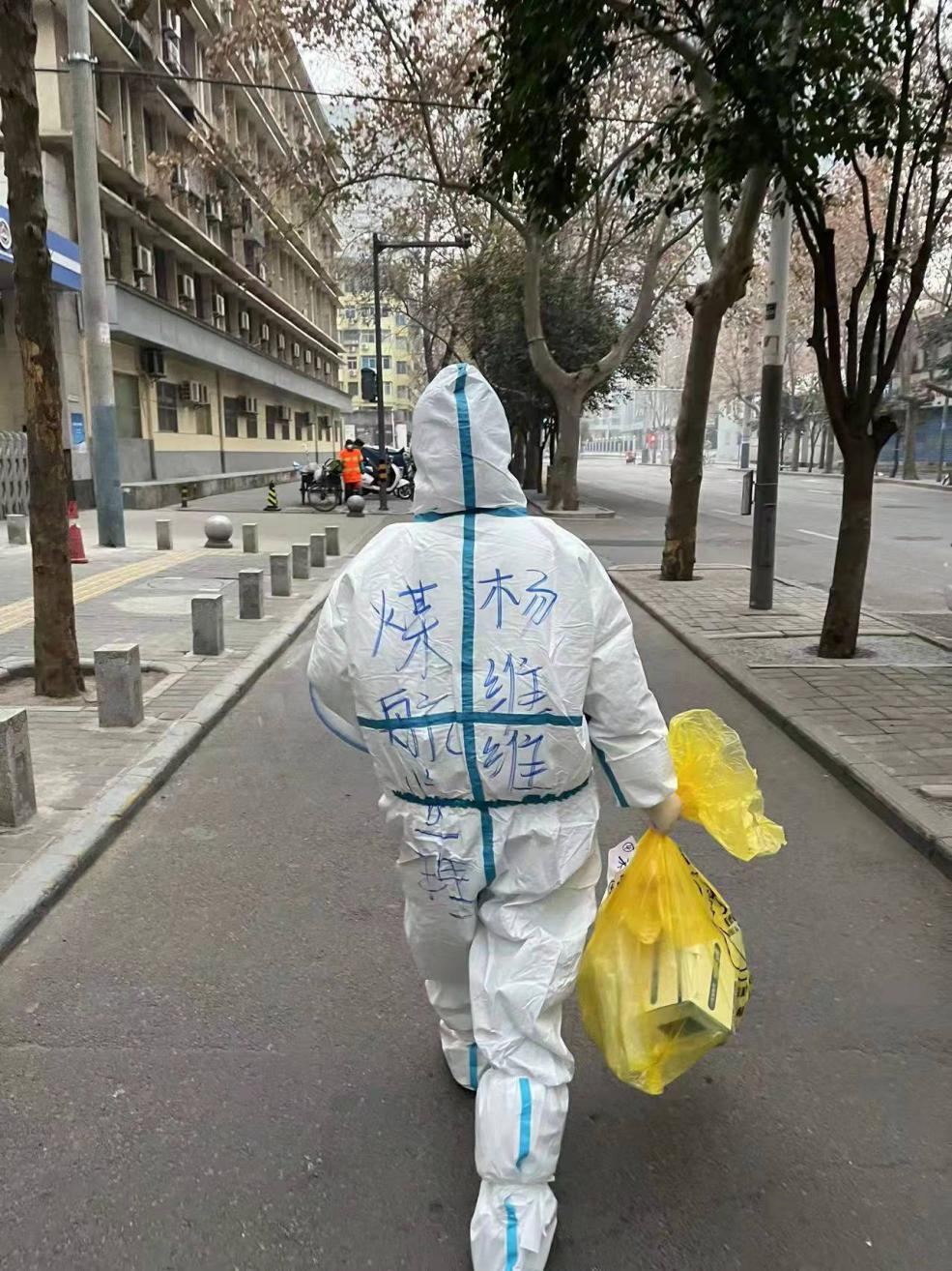 12月23日,全城封閉,西安進入戰(zhàn)備狀態(tài)。我的鄰居已被列為重點隔離觀察對象,每天都有穿著白色防護服的醫(yī)護人員上門進行核酸檢測,第一次讓我感到疫情風險近在眼前,但更讓我擔心的還是鄰居的日常生活和身體狀況,經(jīng)與防疫人員溝通,我負責起了為鄰居取菜,扔垃圾等事情,保障鄰居安心隔離。