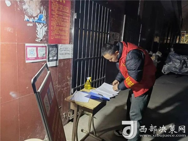 2021年12月24晚22點,該縣教科局召開緊急防控工作會,接到通知后他立即趕到單位待命,部署會結(jié)束后他被分到該縣秦東商貿(mào)小區(qū)疫情防控點開展防控工作。蘇奇其他同志一起連夜趕赴防控點,分組對該小區(qū)所有住戶逐一查驗行程碼、健康碼、詢問每戶人口出行情況并做好記錄,匯總后造冊上報并留存。同時,蘇奇在摸排值守中嚴格落實教科局疫情防控要求:對大門口、樓梯過道定期消毒,避免細菌傳播;對進入小區(qū)人員進行逐一登記,并查看兩碼及出入證,確保無一外來人員混入,24小時隨時保持兩人在崗,同時,在值班期間做好宣傳消除恐慌,出入人員做好登記,查看三碼一證,為小區(qū)住戶做好服務(wù),清除小區(qū)堆積垃圾,避免細菌滋生蔓延,保證居民安全正常的生活秩序。