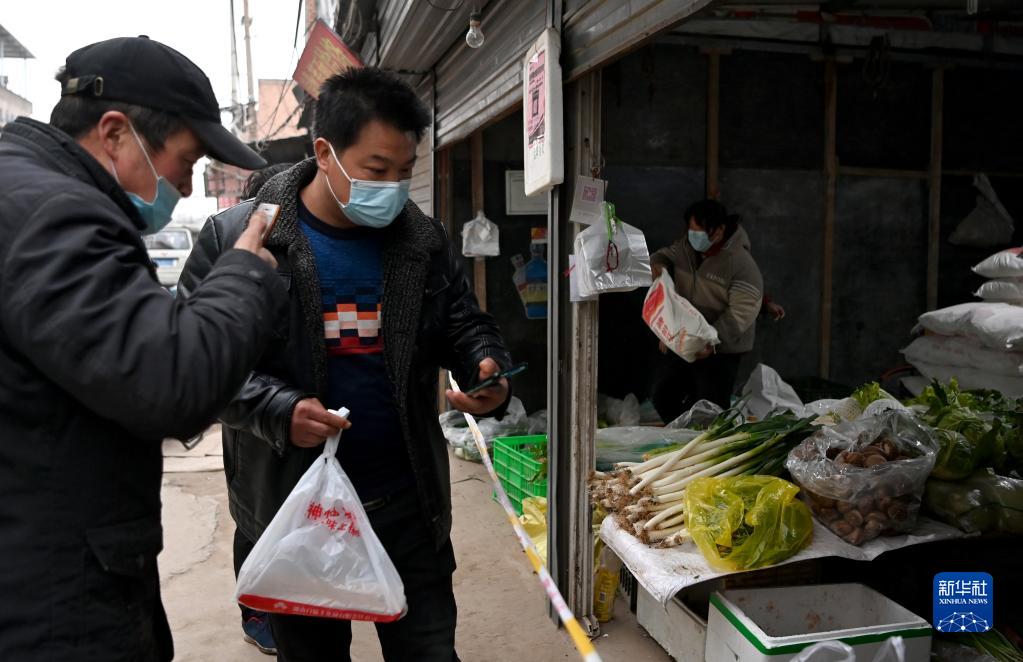 1月7日,西安市未央?yún)^(qū)西唐寨村村民在村里的菜店買菜。