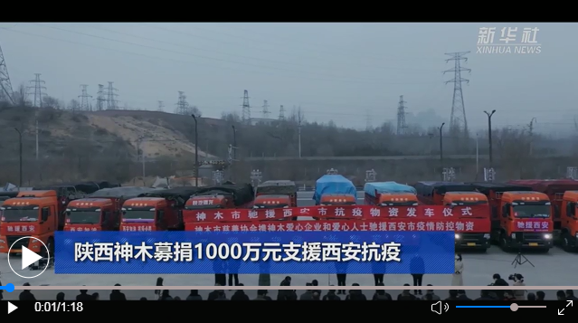 為了支援西安市疫情防控工作,陜西省神木市于1月3日發(fā)起募捐活動(dòng),全市愛(ài)心企業(yè)和愛(ài)心人士積極響應(yīng)參與,共募集善款1000萬(wàn)元。神木市用部分善款采購(gòu)了緊缺生活物資和防疫物資,并向陜西省慈善協(xié)會(huì)捐款361.3萬(wàn)元。8日凌晨,滿載抗疫物資的11輛貨車抵達(dá)西安。