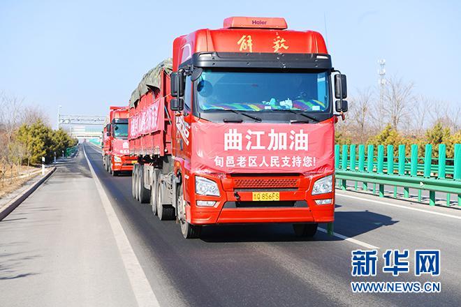 “沒有一個冬天不會過去,沒有一個春天不會到來。”2022年元旦過后,貼著車體標語的運輸車隊,滿載著30萬陜西旬邑紅色老區(qū)父老鄉(xiāng)親暖暖的情誼直奔西安曲江。