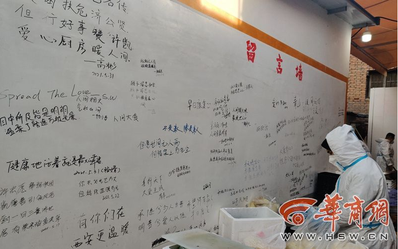由外到內(nèi),愛心人士捐贈的物資經(jīng)由這32名志愿者擇、洗、切、炒、裝盒和送餐,在簡簡單單地流水線上的完成了質(zhì)的轉(zhuǎn)變和愛心的傳遞,德善廚房成了“力量的中轉(zhuǎn)站”。一位臺灣同胞捐贈了1萬元;一位武漢微光救援隊隊員4天兩趟開車往返西安,送來物資;一名執(zhí)行任務(wù)還能出入廚具市場的西安警官,聯(lián)合同事捐贈了一個猛火大灶……諸如此類,不勝枚舉。
