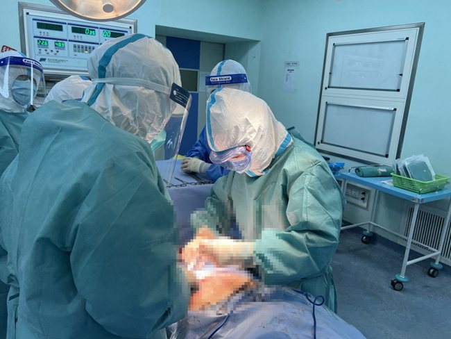 手術(shù)開(kāi)始前,麻醉科醫(yī)生迅速為孕婦打好麻醉,盡快取出胎兒刻不容緩,經(jīng)過(guò)手術(shù),孕婦順利分娩出一名男嬰,母子平安。隨后,轉(zhuǎn)運(yùn)人員第一時(shí)間將嬰兒轉(zhuǎn)入新生兒科隔離暖箱,避免新生兒感染。