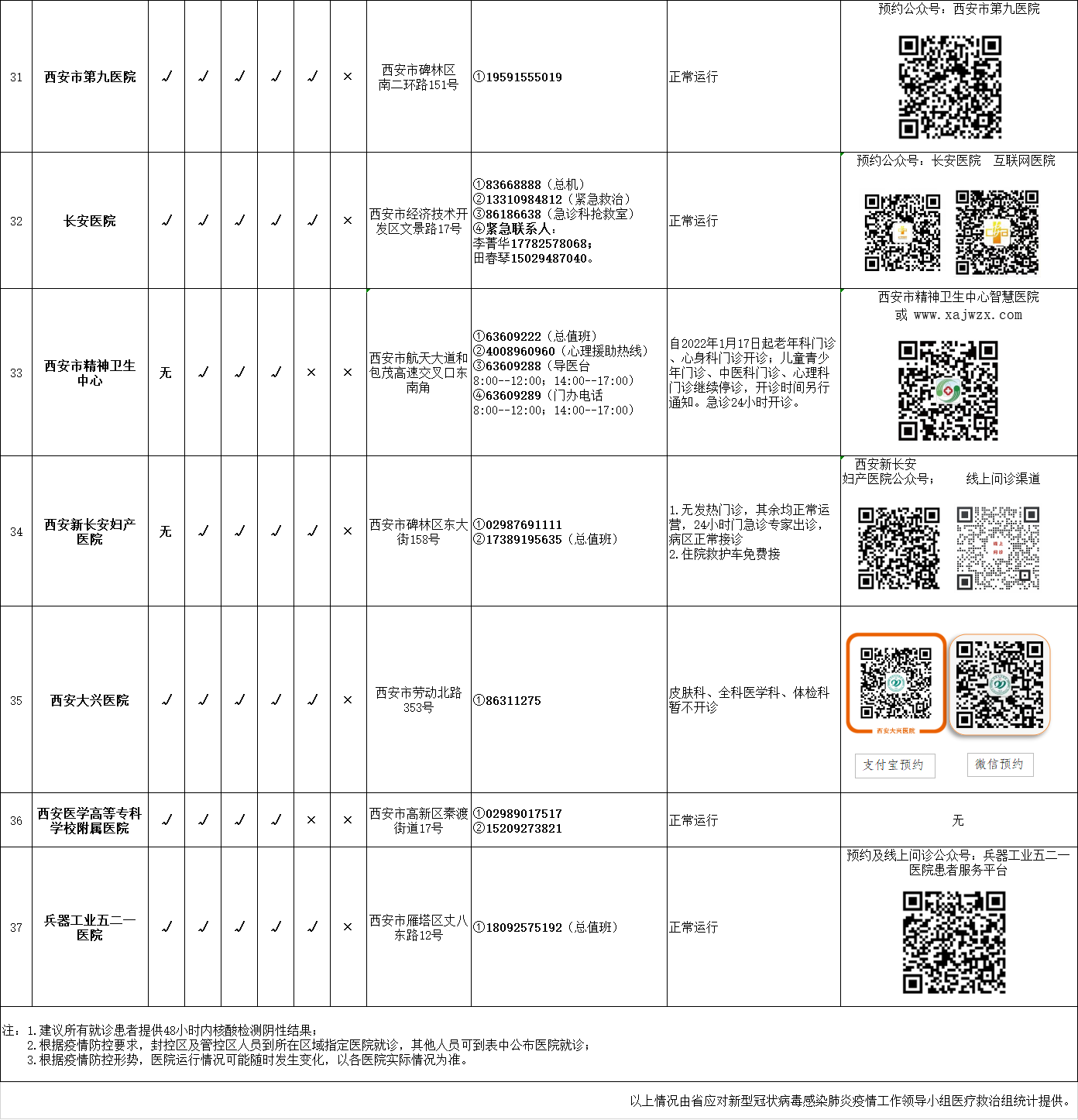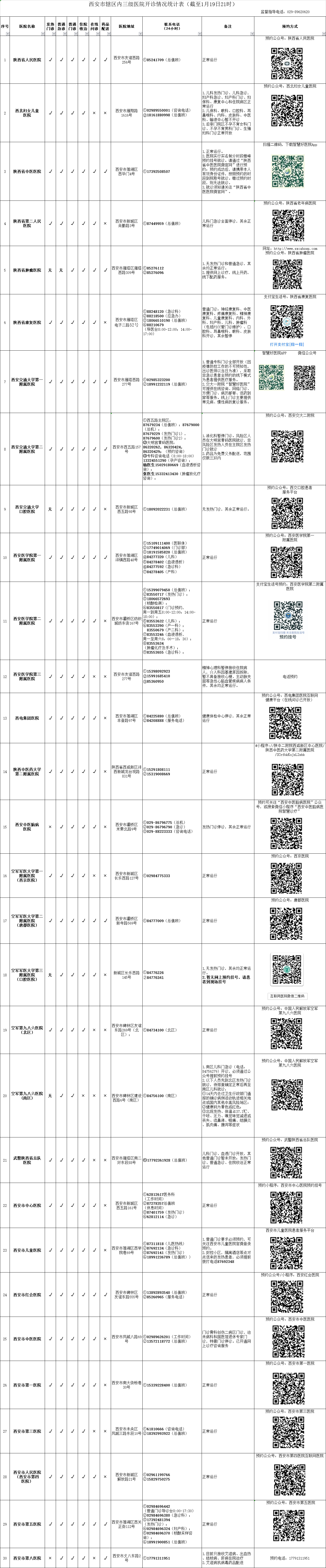 最新!西安市轄區(qū)內三級醫(yī)院開診情況統(tǒng)計表(截至1月19日21時)
