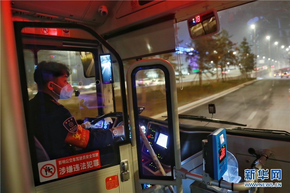 1月25日,西安市公共交通165路汽車司機(jī)駕駛公交車在北辰大道上行駛。新華網(wǎng) 王智超攝