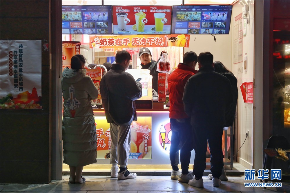 1月25日,在西安市未央?yún)^(qū)一家飲品外,市民正在排隊(duì)購(gòu)買。新華網(wǎng) 王智超 攝