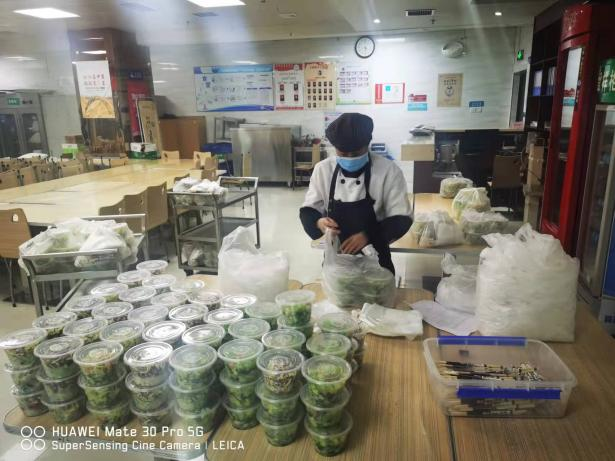 同時,醫(yī)院還成立志愿者送餐服務(wù)隊(duì),為住院患者及陪人提供送餐服務(wù)。餐廳再次完善了送餐流程,明確了餐箱消毒及工作人員防護(hù)要求,讓住院患者享受營養(yǎng)健康又熱乎乎的飯菜。隊(duì)員中有行政后勤人員、醫(yī)生、護(hù)士,他們與餐廳密切合作,確保準(zhǔn)時送達(dá)、數(shù)量準(zhǔn)確,為了保證飯菜的溫度,他們加快速度,提高效率,送餐隊(duì)員們練就了熟練的推車技術(shù),各個都成了“推車高手”,每一餐一千多份餐食移交完畢,隊(duì)員們笑著說“腰都快直不起來了。”但他們沒有一個人叫苦叫累,都說“看到患者吃著熱乎的飯菜,我們覺得每天都是值得的!能為患者服務(wù)好,便是我們對西安抗疫做的最大貢獻(xiàn)。”