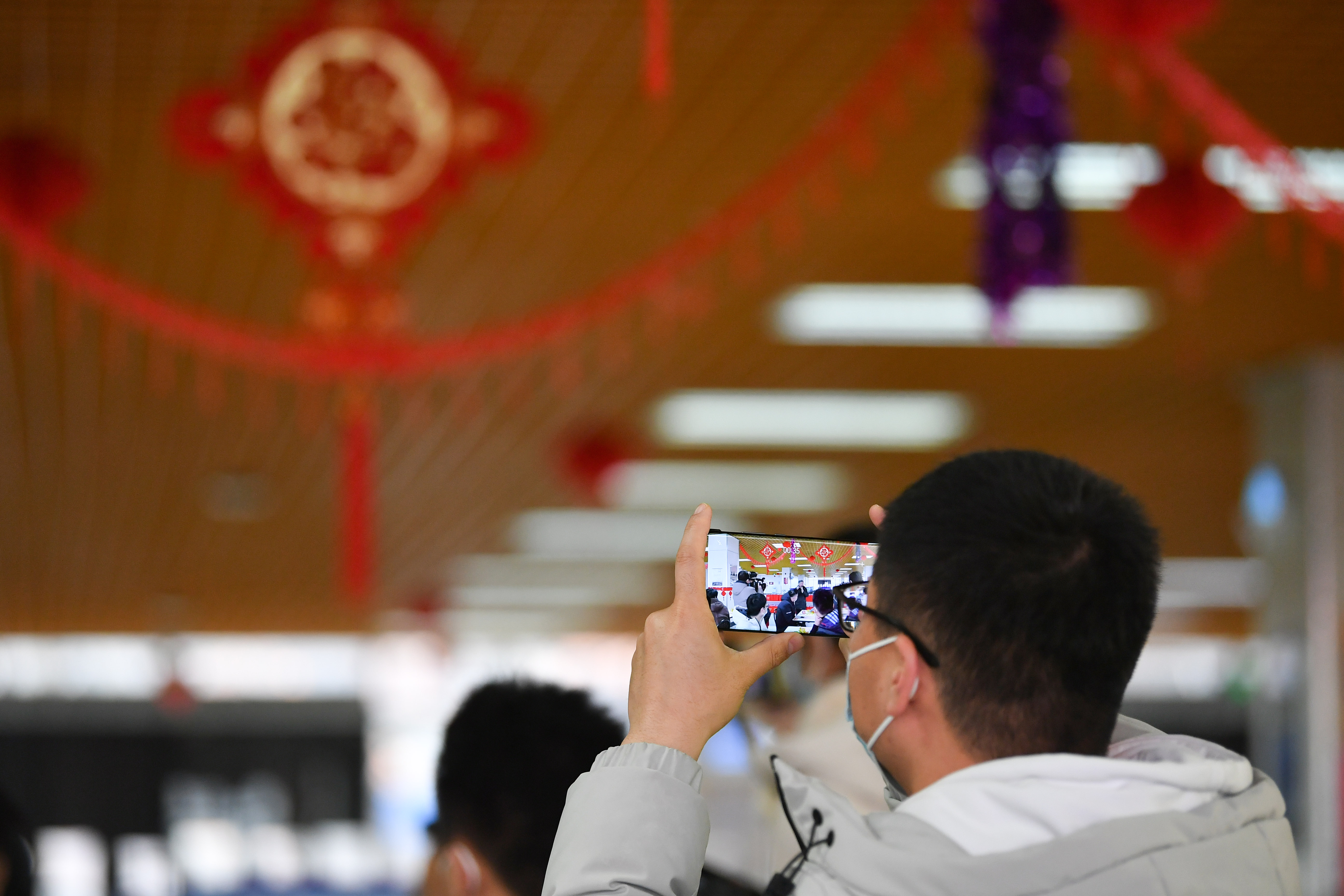 1月29日,西安交通大學興慶校區(qū),一名留校學生拍攝禮包發(fā)放現(xiàn)場。新華社記者 張博文 攝