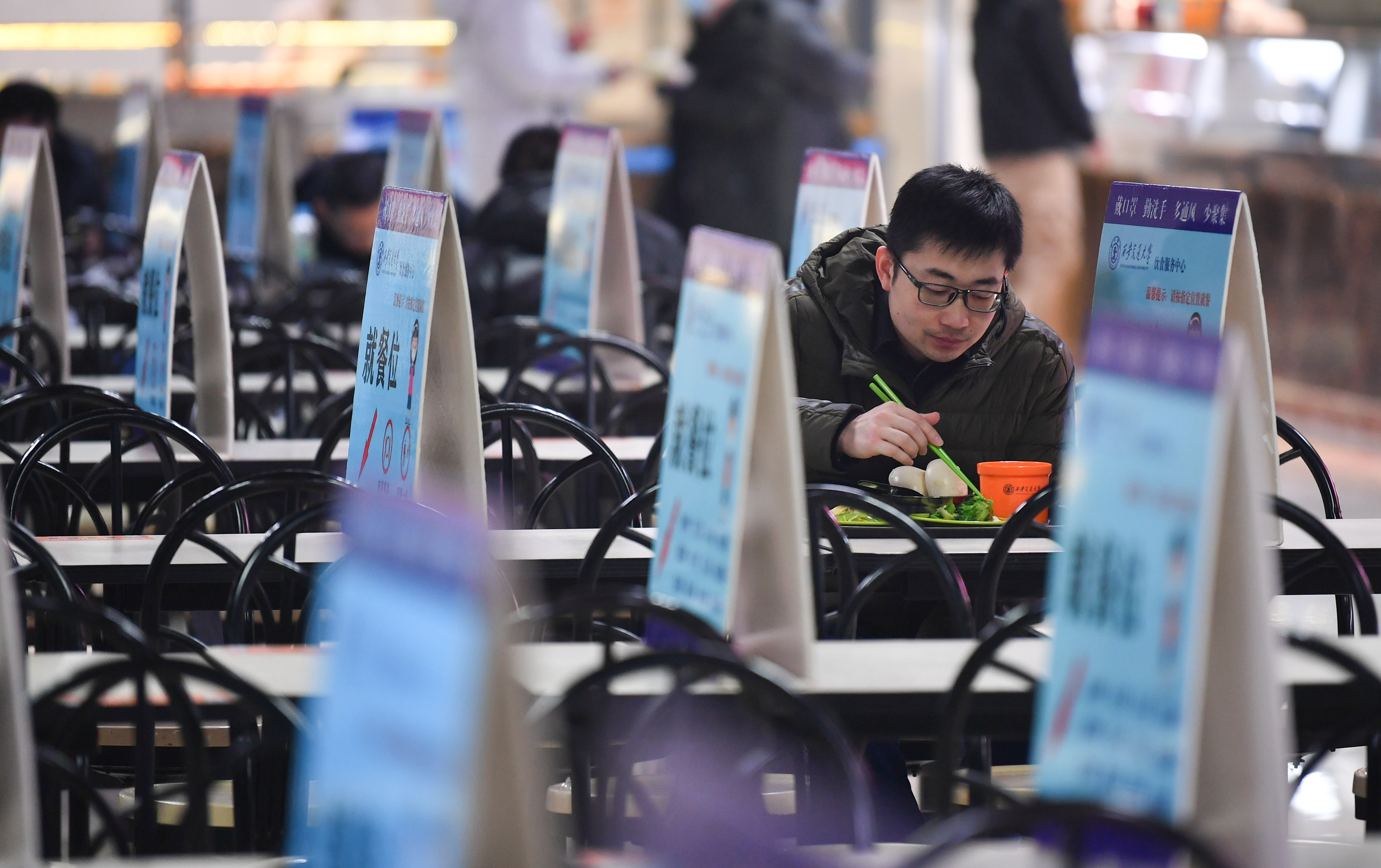 1月29日,一名留校學生在西安交通大學興慶校區(qū)校園食堂用餐。新華社記者 張博文 攝
