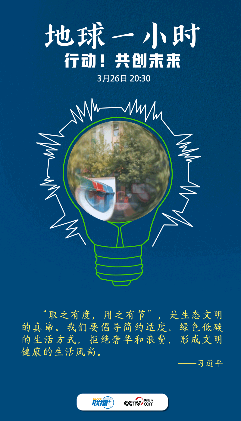 保護(hù)地球不止一小時(shí)。央視網(wǎng)《聯(lián)播+》梳理總書記相關(guān)論述,邀您一起“節(jié)”盡所“能”,爭(zhēng)當(dāng)?shù)厍蚣覉@呵護(hù)者、綠色生活理念傳播者、低碳生活方式踐行者,為建設(shè)綠色新家園多作貢獻(xiàn)。