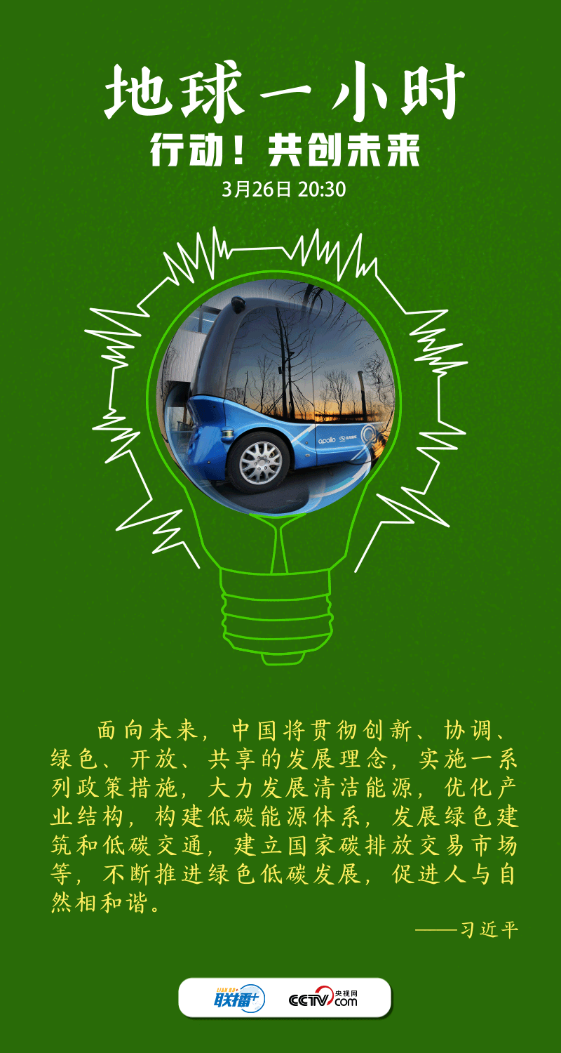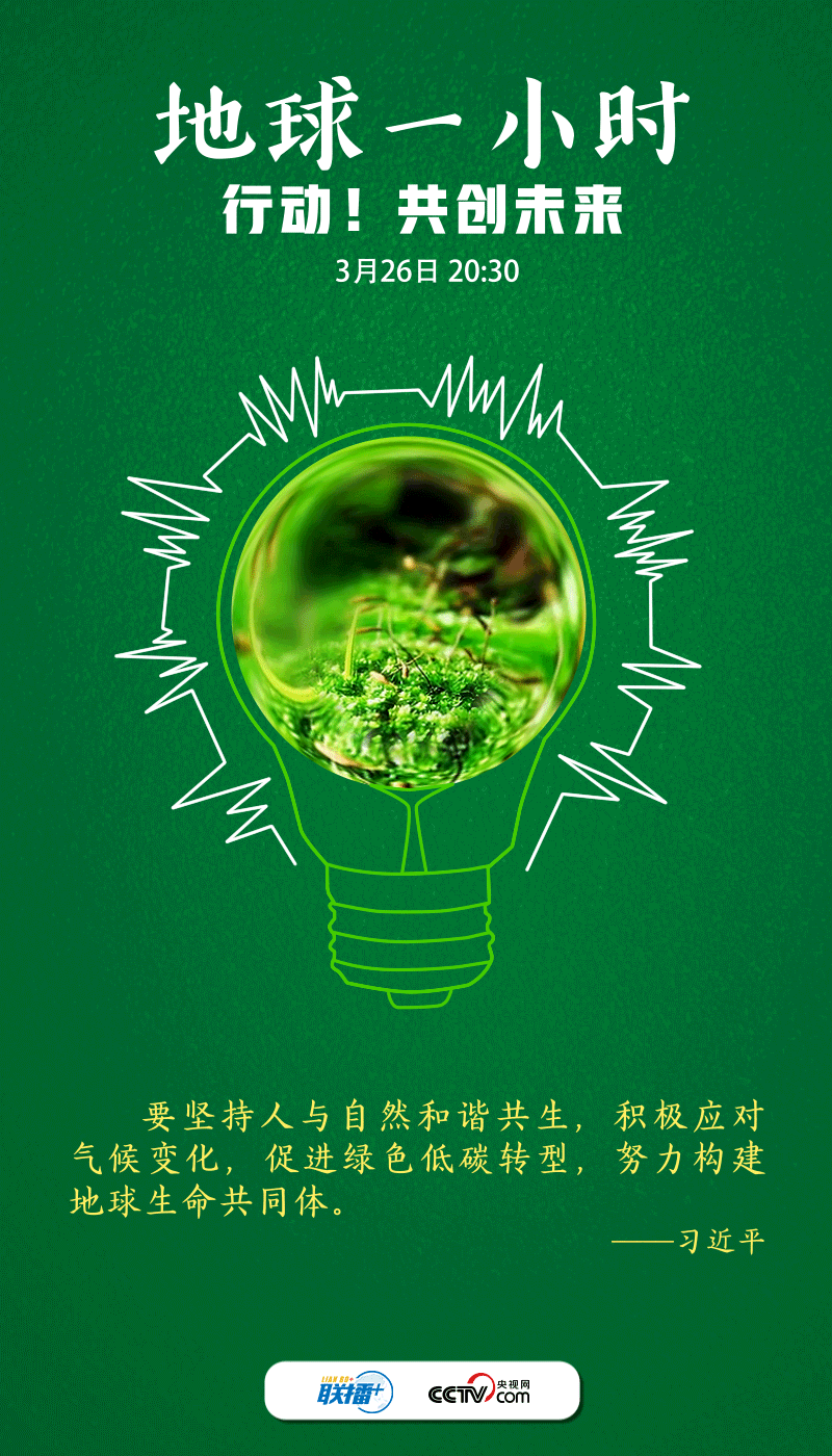 聯(lián)播+2022年3月26日是“地球一小時(shí)”活動(dòng)日。今年的主題是“行動(dòng)!共創(chuàng)未來(lái)”,呼吁世界各國(guó)在2030年之前,就自然保護(hù)、氣候變化和可持續(xù)發(fā)展等達(dá)成全球合作,讓自然向好,讓人類受益。