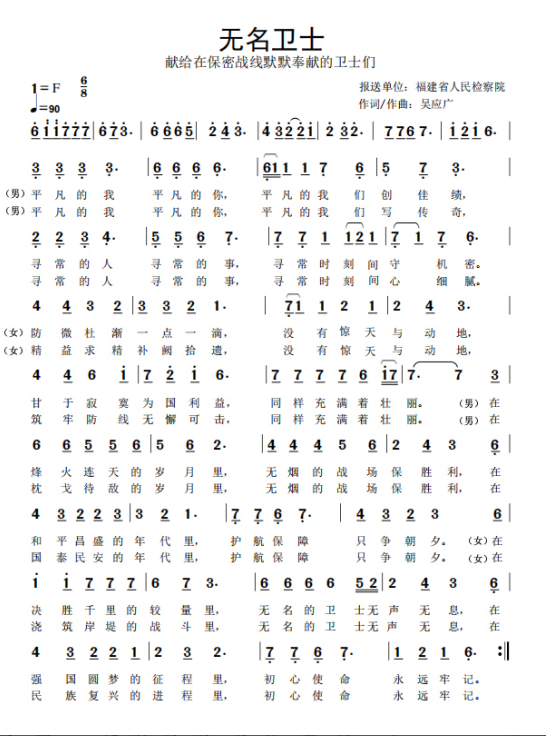 慶祝建黨百年獲獎(jiǎng)歌曲作品選集——《無(wú)名衛(wèi)士》歌詞。