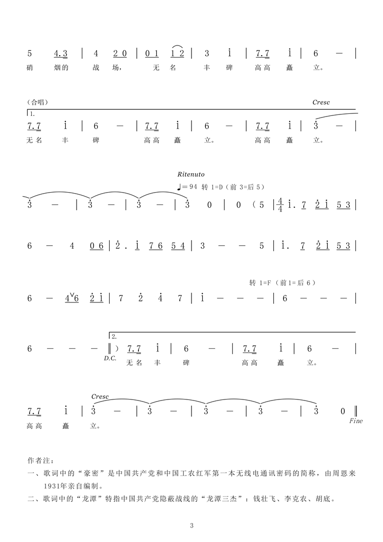 一、A1段歌詞中的“豪密”是中國(guó)共產(chǎn)黨和中國(guó)工農(nóng)紅軍第一本無線電通訊密碼的簡(jiǎn)稱,由周恩來1931年親自編制。