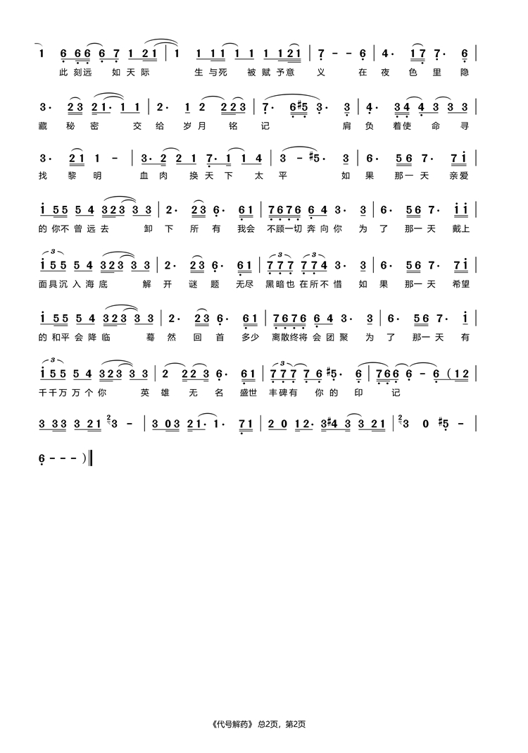 慶祝建黨百年獲獎(jiǎng)歌曲作品選集——《英雄無(wú)名》歌詞。