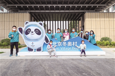 4月17日,北京冬奧村賽后首次開放,建設(shè)者代表及家屬在冬奧村合影留念。 本版攝影/新京報(bào)記者 陶冉