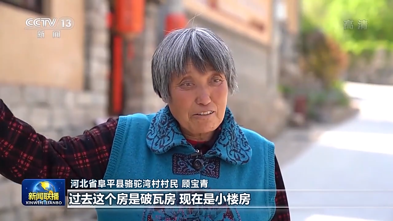 河北省阜平縣駱駝灣村村民 顧寶青:過(guò)去這個(gè)房是破瓦房,現(xiàn)在是小樓房。過(guò)去路是土路,現(xiàn)在是柏油路。日子越過(guò)越紅火,感謝黨中央的好政策。