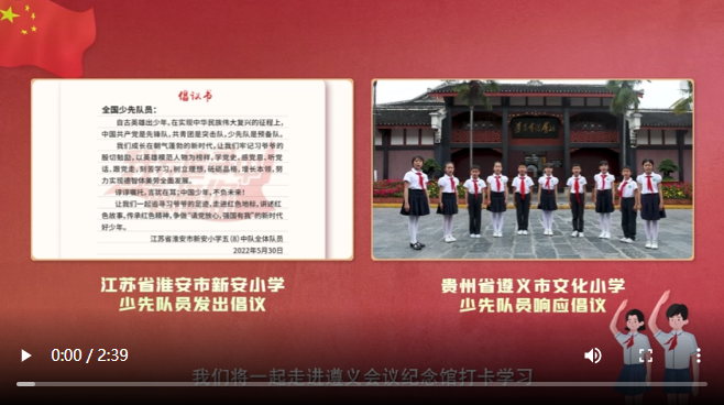 2022年5月30日,是江蘇省淮安市新安小學(xué)少先隊(duì)員們收到習(xí)近平總書(shū)記回信一周年的日子。近日,他們向全國(guó)少先隊(duì)員發(fā)出“跟著習(xí)爺爺?shù)淖阚E學(xué)黨史”的倡議。貴州省遵義市文化小學(xué)的少先隊(duì)員們第一時(shí)間響應(yīng)倡議,追尋習(xí)爺爺?shù)淖阚E,打卡遵義會(huì)議紀(jì)念館,講述紅色故事,傳承紅色基因。