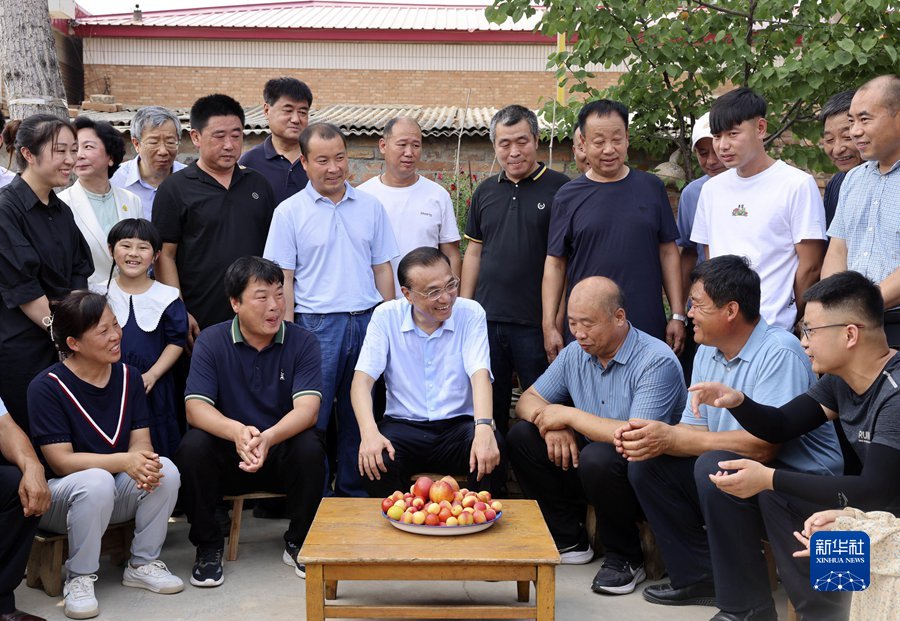 6月21日,中共中央政治局常委、國務(wù)院總理李克強在河北高碑店、涿州考察。這是李克強來到高碑店大鋪村,察看晾曬的小麥后,與村民圍坐交談。 新華社記者 劉衛(wèi)兵 攝