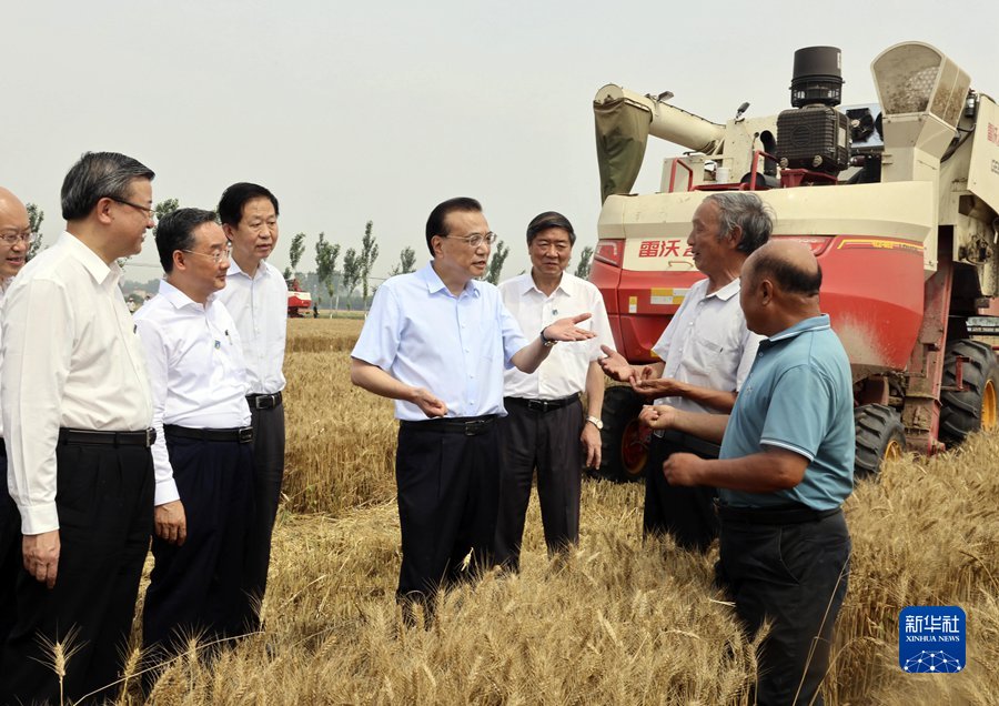 6月21日,中共中央政治局常委、國務(wù)院總理李克強在河北高碑店、涿州考察。這是李克強在高碑店方官鎮(zhèn)小麥地里,與種糧農(nóng)戶等交談。 新華社記者 劉衛(wèi)兵 攝
