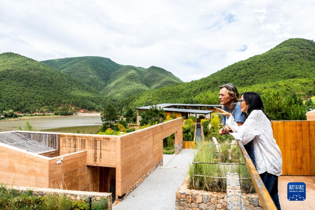 8月31日,林登和妻子瑾妮在沙溪鎮(zhèn)石龍村討論鄉(xiāng)村圖書館的設(shè)計(jì)。新華社記者 曹夢瑤 攝