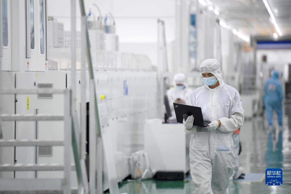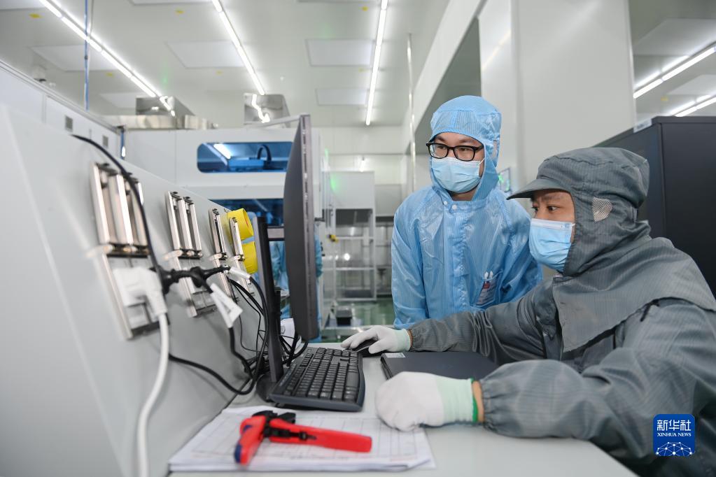 科研人員在秦創(chuàng)原光伏創(chuàng)新中心——隆基中央研究院中試線(xiàn)上工作(2022年9月23日攝)。新華社記者 李一博 攝