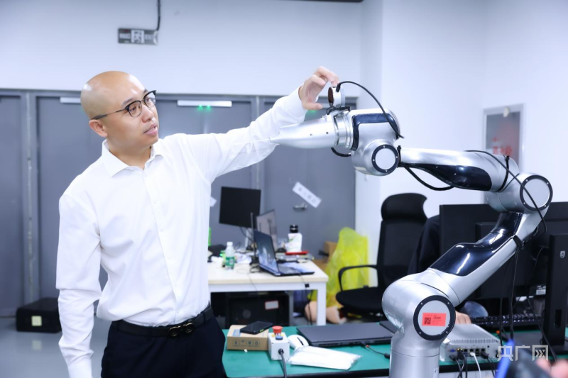 林杰介紹正在研發(fā)中的采樣機(jī)器人(央廣網(wǎng)發(fā) 王克偉 攝)
