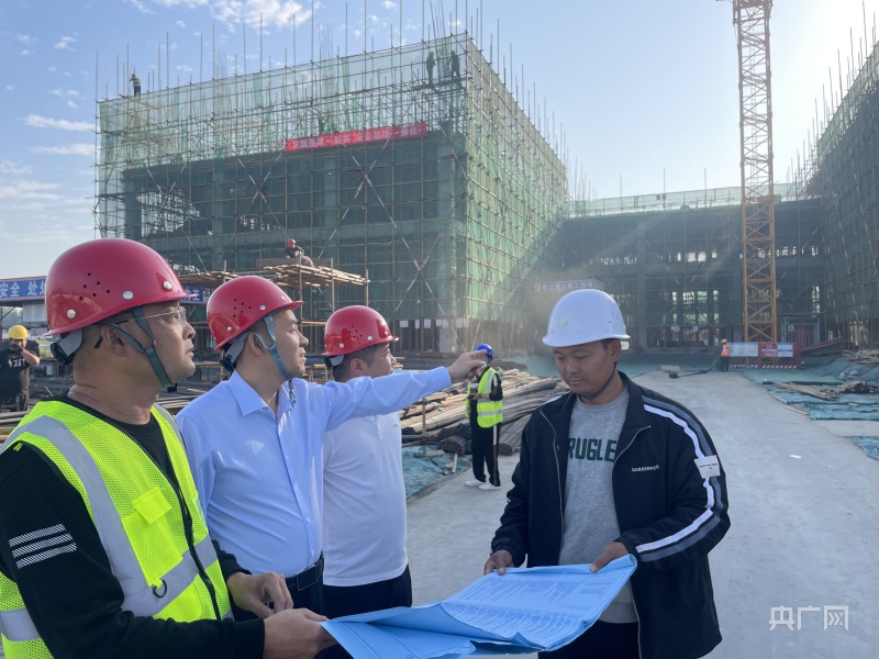張留民(左二)在電源器件生產(chǎn)項(xiàng)目建設(shè)現(xiàn)場(央廣網(wǎng)發(fā) 殷吉星 攝)