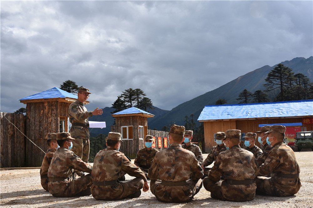 10月17日,西藏林芝軍分區(qū)“墨脫戍邊模范營”組織官兵學(xué)習(xí)黨的二十大報告。新華社發(fā)(游毅 攝)