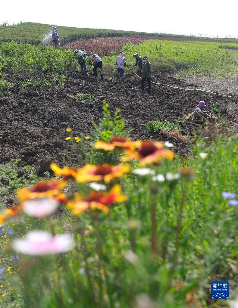 2022年6月2日,工人在遼寧撫順西露天礦內(nèi)植樹。新華社記者 楊青攝