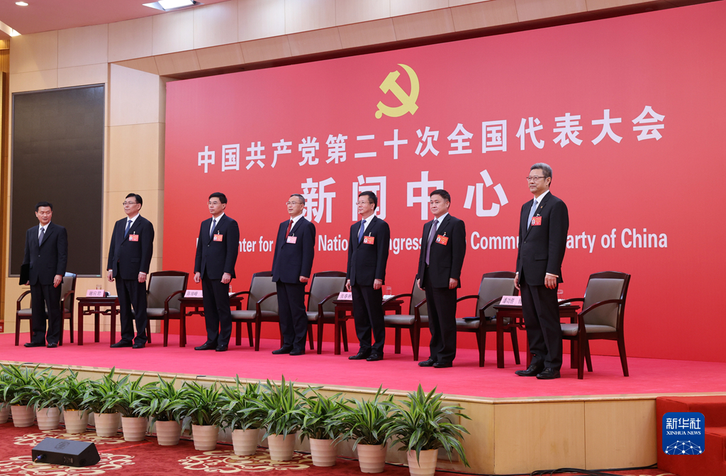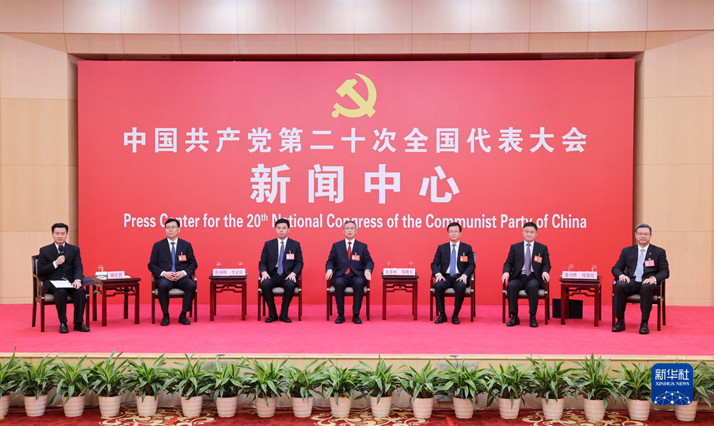 10月20日,中國共產(chǎn)黨第二十次全國代表大會新聞中心舉行集體采訪。青海、寧夏、新疆、中央和國家機(jī)關(guān)、中央金融系統(tǒng)、中央企業(yè)系統(tǒng)(在京)代表團(tuán)新聞發(fā)言人出席,介紹代表團(tuán)學(xué)習(xí)討論二十大報(bào)告情況,并回答記者提問。新華社記者 陳建力 攝