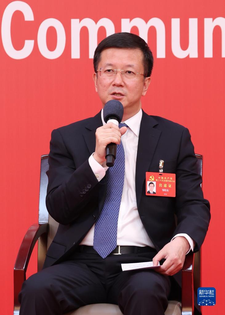 10月20日,中國共產(chǎn)黨第二十次全國代表大會新聞中心舉行集體采訪。青海、寧夏、新疆、中央和國家機(jī)關(guān)、中央金融系統(tǒng)、中央企業(yè)系統(tǒng)(在京)代表團(tuán)新聞發(fā)言人出席,介紹代表團(tuán)學(xué)習(xí)討論二十大報(bào)告情況,并回答記者提問。新華社記者 張玉薇 攝
