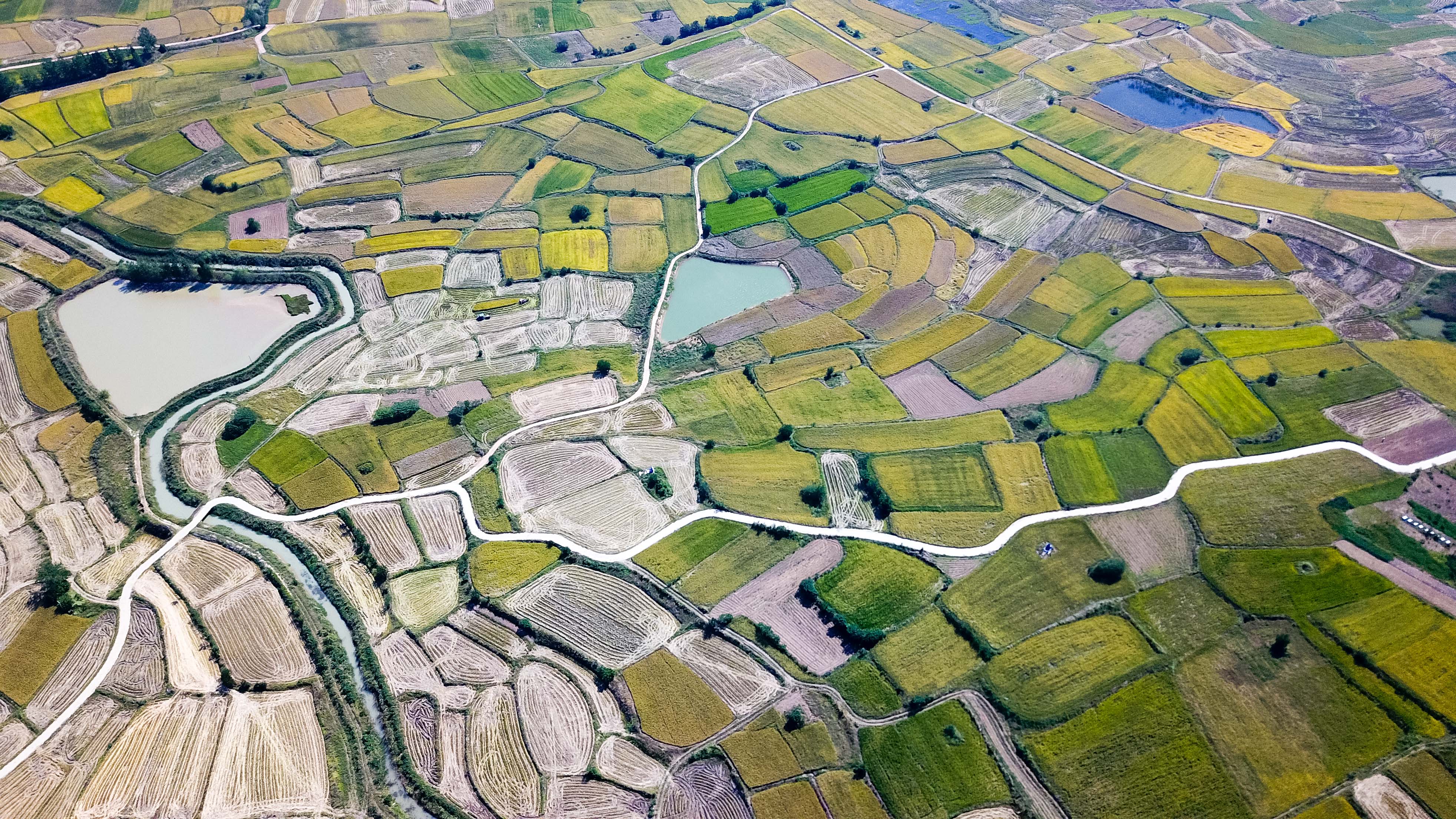 安徽省鳳陽(yáng)縣小崗村的田野景象(2018年9月27日攝,無(wú)人機(jī)照片)。新華社記者 張端 攝