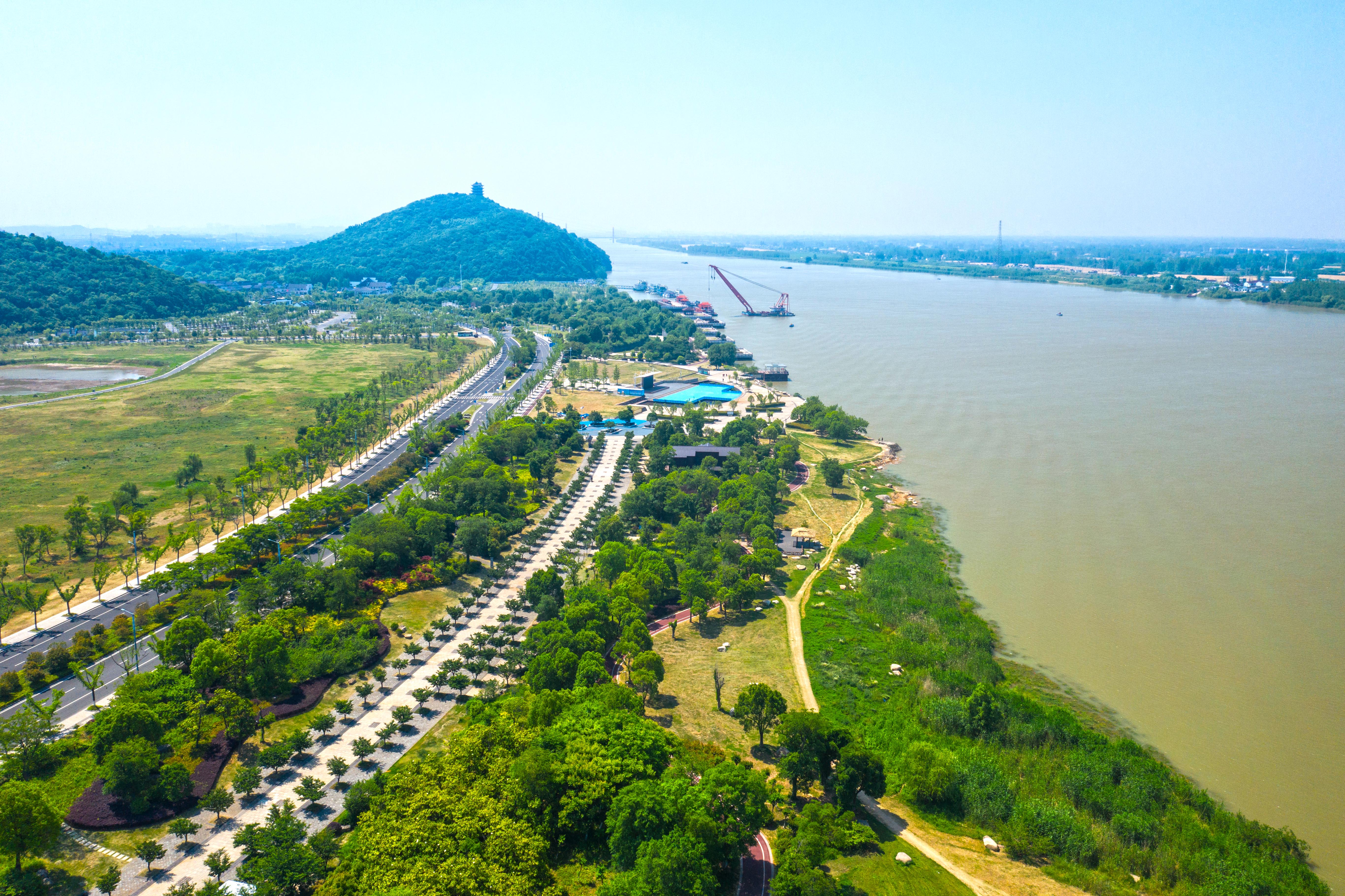 安徽省馬鞍山市長(zhǎng)江岸線景觀帶(2022年5月17日攝,無(wú)人機(jī)照片)。新華社發(fā)