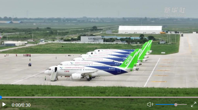 C919飛機是中國商飛公司設(shè)計研制生產(chǎn)的150座級國產(chǎn)大型客機,也是繼中國商飛公司ARJ21-700飛機后第二款獲得民航局生產(chǎn)許可證的國產(chǎn)噴氣式客機,其總裝生產(chǎn)基地位于上海浦東祝橋。(記者賈遠(yuǎn)琨)
