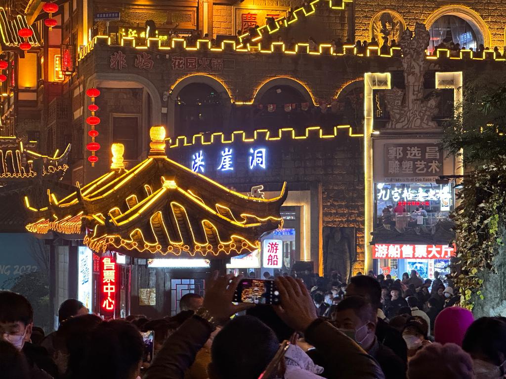 1月,重慶洪崖洞民俗風(fēng)貌區(qū)內(nèi)游客如織。新華社記者 李曉婷 攝