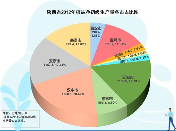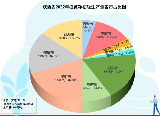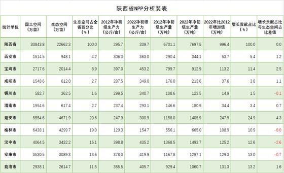 全省元生產(chǎn)力區(qū)域分析結(jié)果表明,在三大區(qū)域生態(tài)蛋糕越來越大的同時(shí),生態(tài)蛋糕的空間布局上與結(jié)構(gòu)發(fā)生變化,呈現(xiàn)黃河流域綠色崛起大趨勢(shì)。陜北榆林、延安兩市,生態(tài)空間8971.6萬(wàn)畝,占全省的39.6%;關(guān)中西安、寶雞、咸陽(yáng)、渭南、銅川五市生態(tài)空間4554.5萬(wàn)畝,占全省的29.2%;陜南漢中、安康、商洛三市生態(tài)空間9136.2萬(wàn)畝,占全省的40.2%。2022年,陜北兩市提供了2070.9萬(wàn)噸植被凈初級(jí)生產(chǎn)量,占全省的26.9%,比2012年的1714.1萬(wàn)噸增加313.8萬(wàn)噸,增長(zhǎng)18.3%,在全省份額上升了1.3個(gè)百分點(diǎn);關(guān)中五市提供了1775.1萬(wàn)噸的植被凈初級(jí)生產(chǎn)量,占全省的23.1%,比2012年的1524.3萬(wàn)噸250.8萬(wàn)噸,增長(zhǎng)16.4%,在全省份額上升了0.3個(gè)百分點(diǎn);陜南三市提供了3851.5萬(wàn)噸植被凈初級(jí)生產(chǎn)量,占全省的50.0%,比2012年的3462.7萬(wàn)噸增加388.8萬(wàn)噸,增長(zhǎng)11.2%,在全省份額下降了1.6個(gè)百分點(diǎn)。2012-2022年全省新增生態(tài)蛋糕996.4萬(wàn)噸,陜北兩市貢獻(xiàn)31.5%,關(guān)中五市貢獻(xiàn)29.5%,陜南三市貢獻(xiàn)39.0%。陜北、關(guān)中提供的生態(tài)蛋糕占全省的份額已由2012年的48.4%提高到2022年的50.0%。