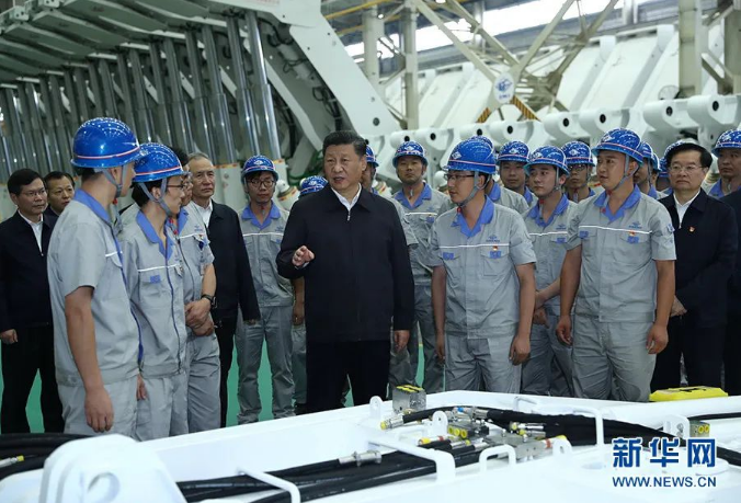 2019年9月16日至18日,習(xí)近平在河南考察。這是17日下午,習(xí)近平在鄭州煤礦機械集團股份有限公司總裝車間同工人們親切交流。新華社記者 鞠鵬 攝