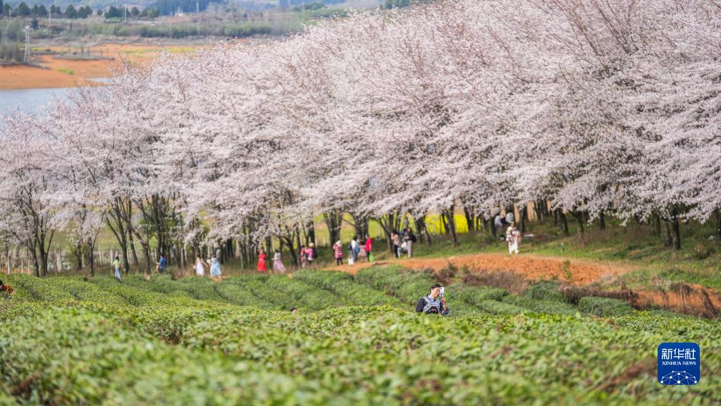 近日,貴州省貴安新區(qū)櫻花園內的2.4萬畝櫻花競相綻放,如雪似霞,吸引游客前來賞花觀光?!?/p>