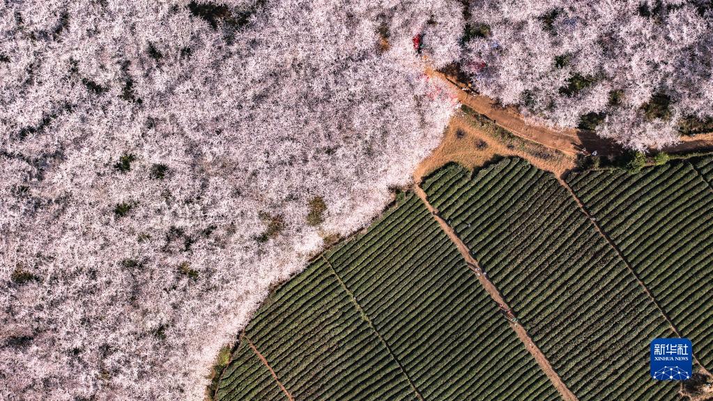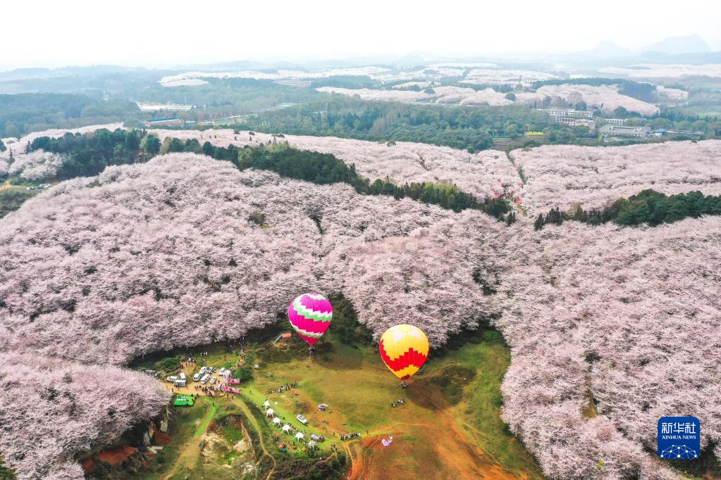 3月21日拍攝的貴州省貴安新區(qū)櫻花園(無人機照片)。新華社記者 陶亮 攝