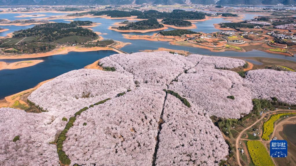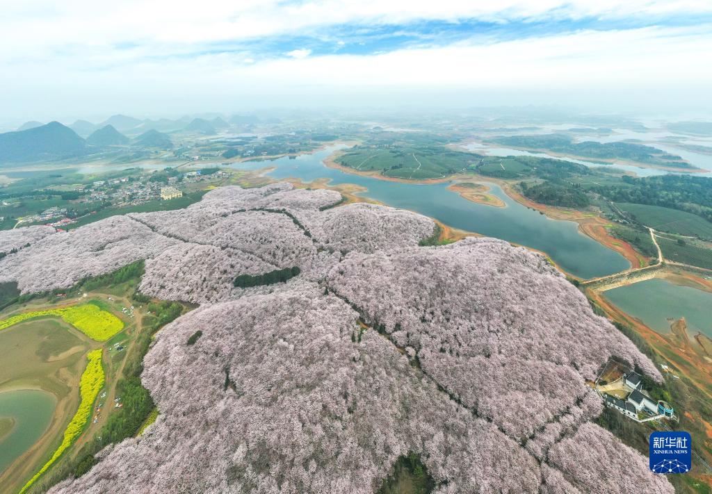 這是3月21日拍攝的貴州省貴安新區(qū)櫻花園(無人機全景照片)。新華社記者 楊文斌 攝