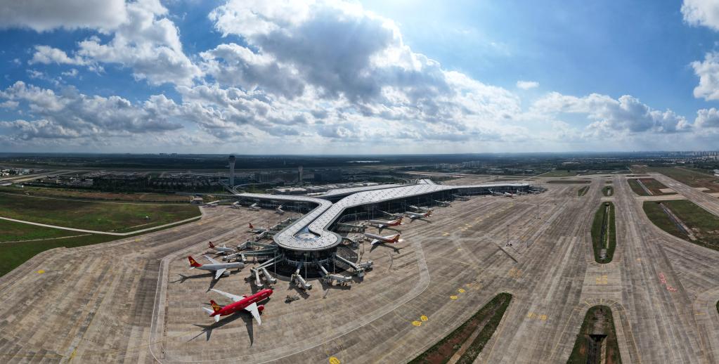 這是2021年11月20日拍攝的??诿捞m國(guó)際機(jī)場(chǎng)二期項(xiàng)目(無人機(jī)照片)。新華社記者 楊冠宇 攝