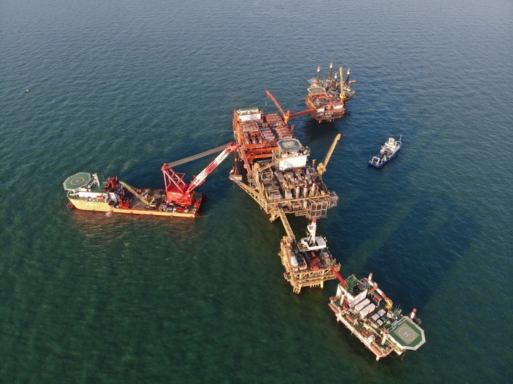 墾利6-1油田群位于渤海南部,石油探明地質(zhì)儲量超過一億噸,是中國渤海萊北低凸起淺層勘探發(fā)現(xiàn)的首個億噸級巖性大型油田。這個油田群由中國海洋石油集團有限公司經(jīng)營,分5個區(qū)塊,由9座無人井口平臺和1座中心處理平臺組成,一天可生產(chǎn)原油超8000噸。