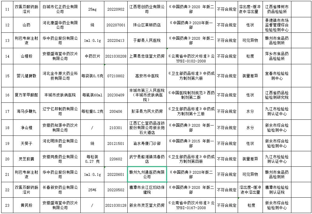 為加強(qiáng)藥品質(zhì)量監(jiān)管,保障公眾用藥安全,根據(jù)《中華人民共和國(guó)藥品管理法》及相關(guān)法律法規(guī)和江西省藥品抽檢計(jì)劃,我省各級(jí)藥品監(jiān)管部門和檢驗(yàn)機(jī)構(gòu)對(duì)全省藥品生產(chǎn)、經(jīng)營(yíng)和使用單位實(shí)施了監(jiān)督抽檢。現(xiàn)將本期藥品抽檢信息通報(bào)如下: