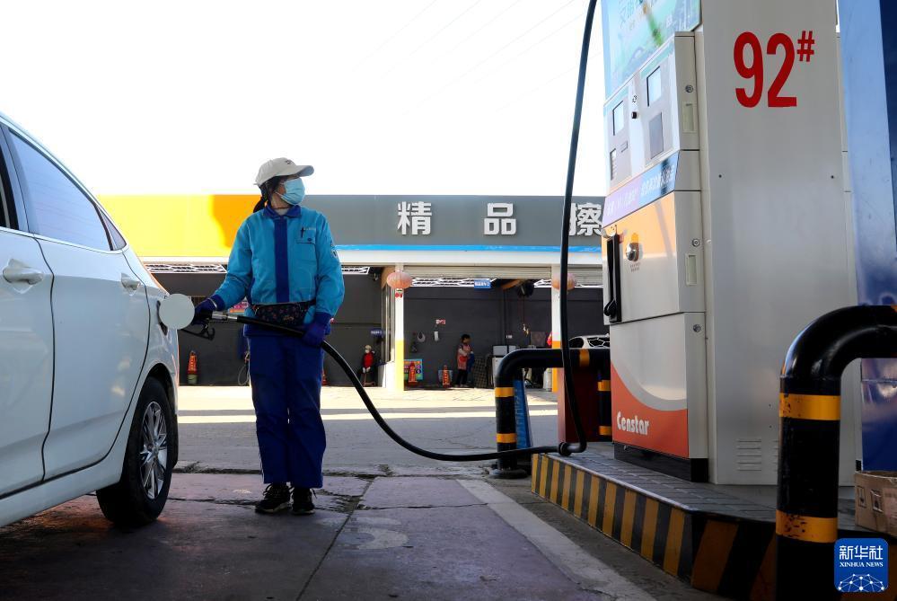 11月7日,山東省滕州市一加油站工作人員在給汽車加油。新華社發(fā)(孫楊 攝)
