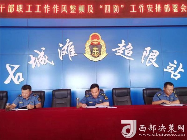 西部決策網(wǎng)訊 8月10日下午,古城灘超限檢測站召開干部職工工作作風(fēng)整頓及“四防”工作安排部署會。會議由支部書記姬龍飛主持,全站所有職工參加會議。