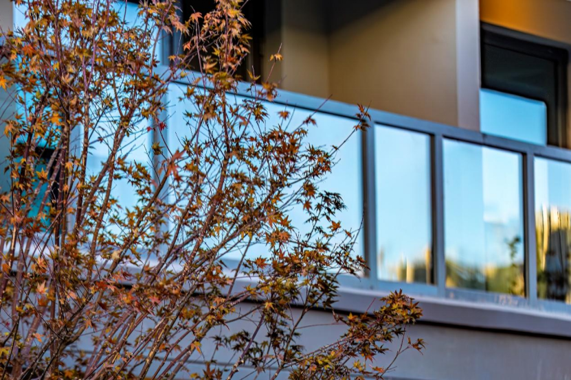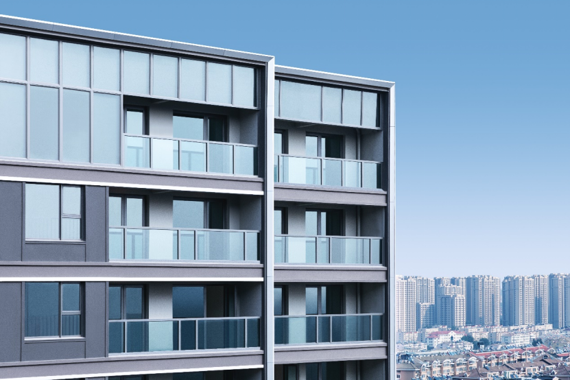 立面打造上,桂語朝陽是綠城創(chuàng)新Design系立面在青島的首次落地,實景下的建筑立面簡潔、俊朗,現(xiàn)代極簡的建筑工藝美學(xué)呈現(xiàn)極具辨識度的扁平化質(zhì)感,超纖細金屬鋁板邊框和大面積玻璃的創(chuàng)新應(yīng)用,力求營造溫暖沉穩(wěn),輕奢典雅的立面調(diào)性。而且這種建筑外墻材質(zhì)造價很高,但是可以使樓體始終保持“歷久彌新”的感覺。