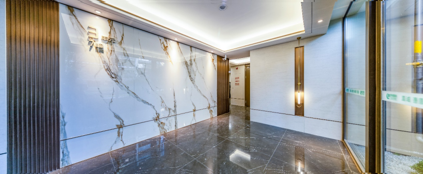 地下光廳的打造,以沖孔鋁板頂面,搭配以900x1800大規(guī)格墻面瓷磚+木紋冰火板,消防功能之上品質(zhì)感滿格。種種細節(jié)升級,只為給業(yè)主帶來富有質(zhì)感的生活居住體驗。